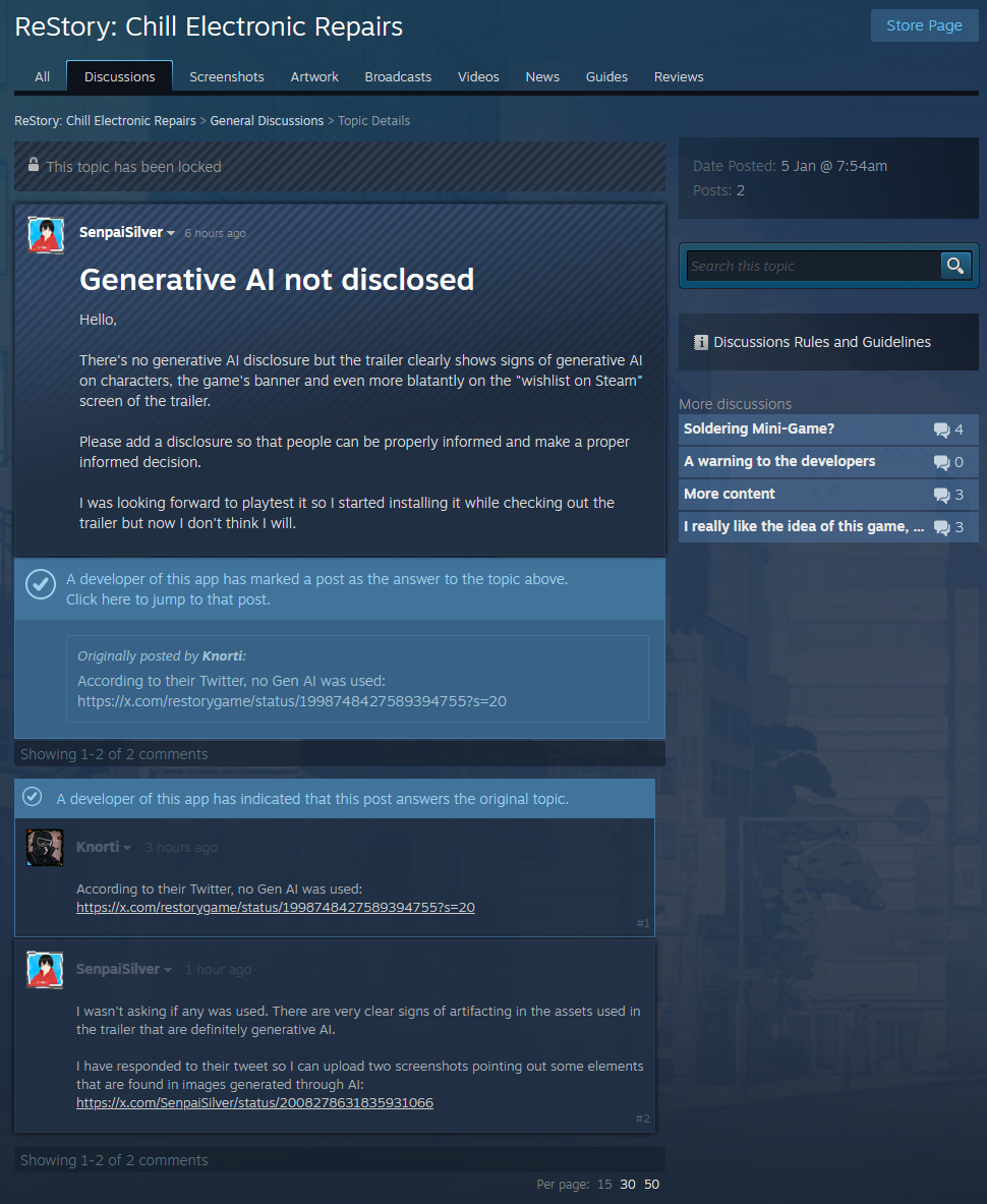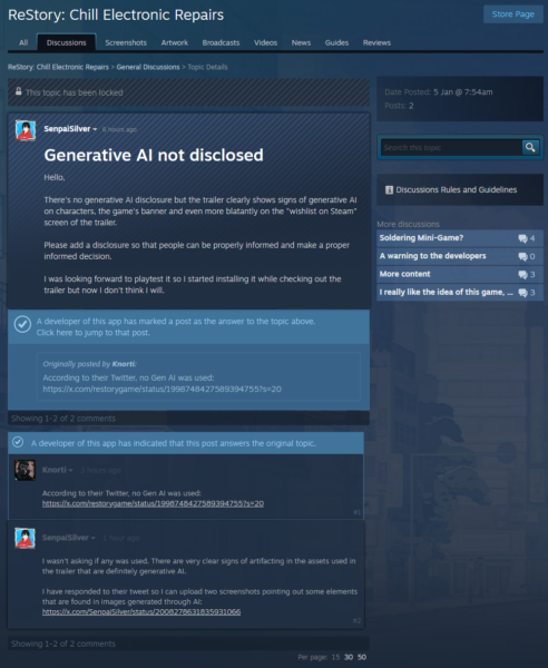 The issue I want to raise is that there are some games on Steam that do not disclose the usage of generative AI and I think it’s not right to not inform people.