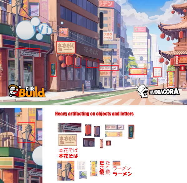 It’s easy to point out “mistakes” as some form of art direction because you don’t like that way it’s drawn or it the art style doesn’t feel right. Sadly there’s some heavy artifacting, the kind of artifacting that is not easy to produce manually.